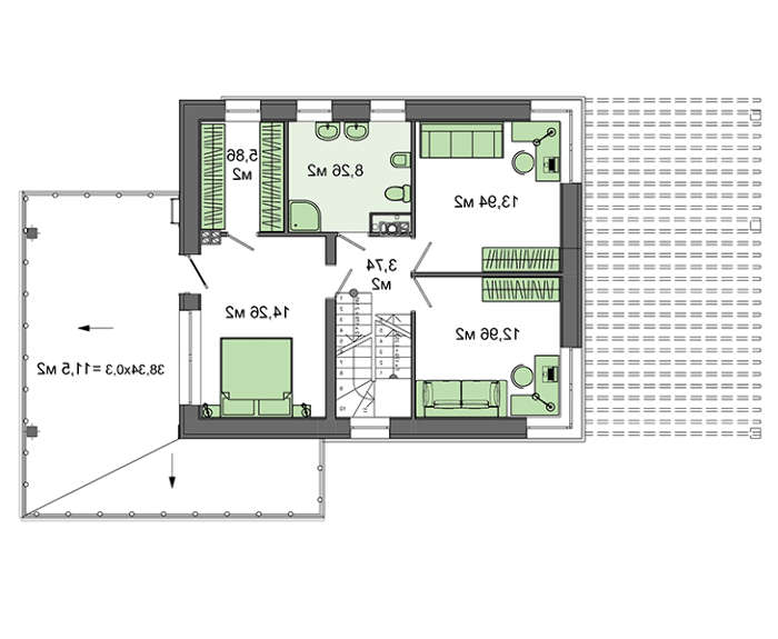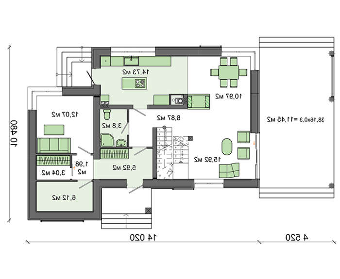 • 4M561 Проект стильного дома в духе минимализма общей площадью 168 кв. м, жилой 69 кв. м