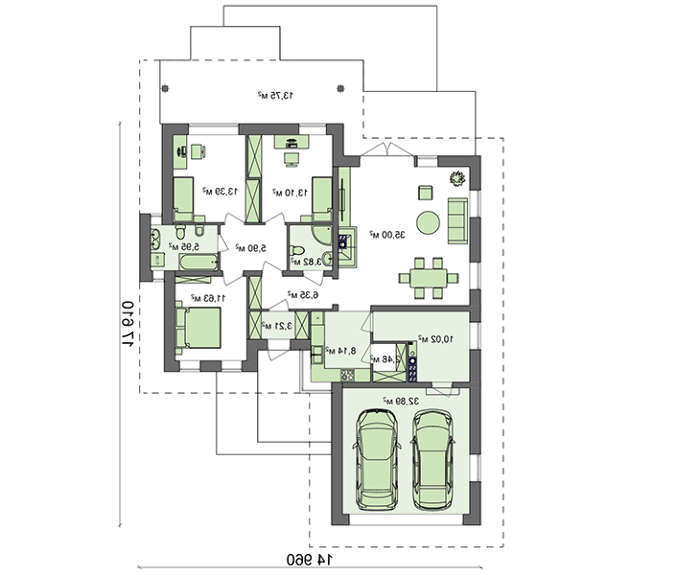 Проект содержит три раздела – Архитектурный, Конструктивный и Инженерный: водоснабжение, отопление, вентиляция, канализация, электроснабжение (приобретается за дополнительную плату) + Пояснительная записка.