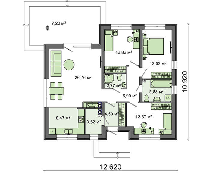 Проект стильного оригинального одноэтажного классического дома 4M314