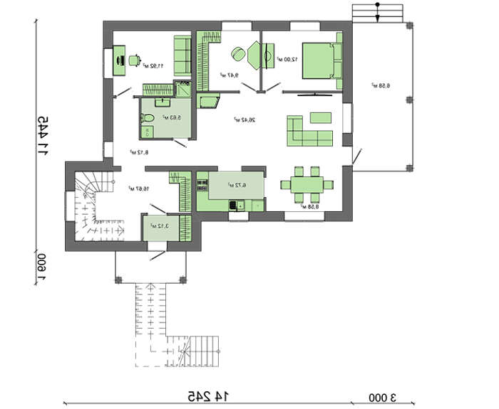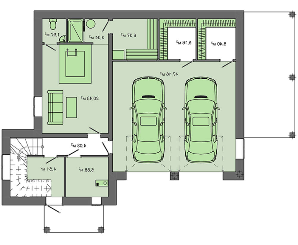 Проект содержит три раздела – Архитектурный, Конструктивный и Инженерный: водоснабжение, отопление, вентиляция, канализация, электроснабжение (приобретается за дополнительную плату) + Пояснительная записка.