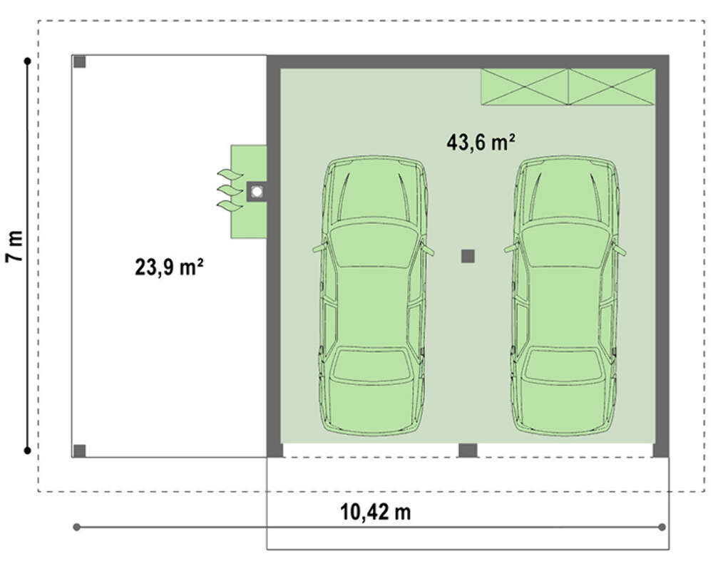 Проект удобного гаража на 2 авто площадью 50 кв.м. 4M7069