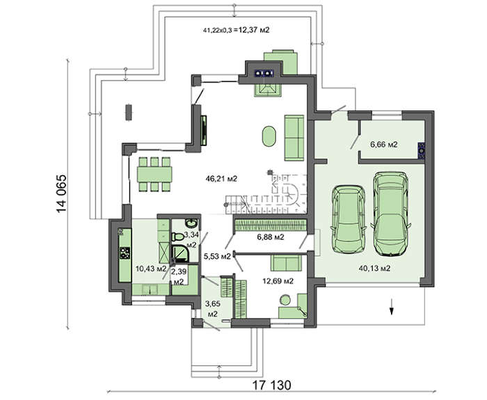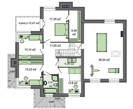 Проект содержит три раздела – Архитектурный, Конструктивный и Инженерный: водоснабжение, отопление, вентиляция, канализация, электроснабжение (приобретается за дополнительную плату) + Пояснительная записка.