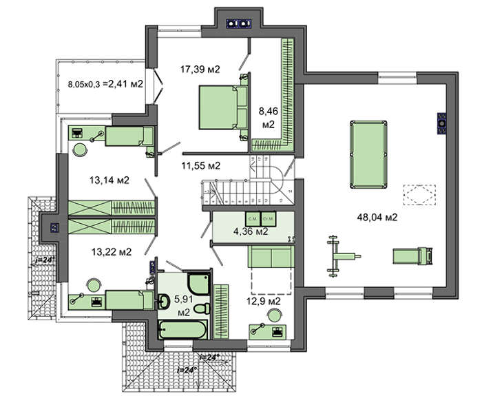 | Кровля: | металлочерепица, керамическая черепица, битумная |