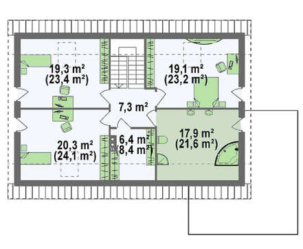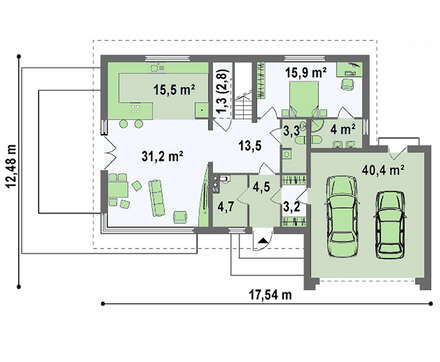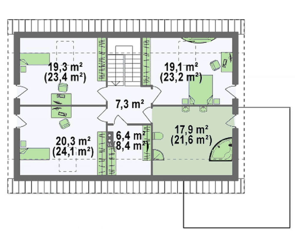 Проект содержит три раздела – Архитектурный, Конструктивный и Инженерный: водоснабжение, отопление, вентиляция, канализация, электроснабжение (приобретается за дополнительную плату) + Пояснительная записка.
