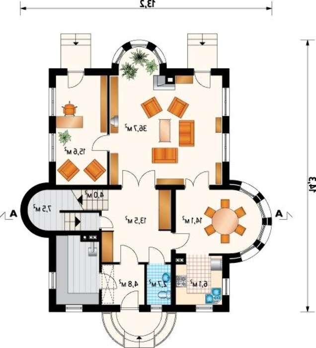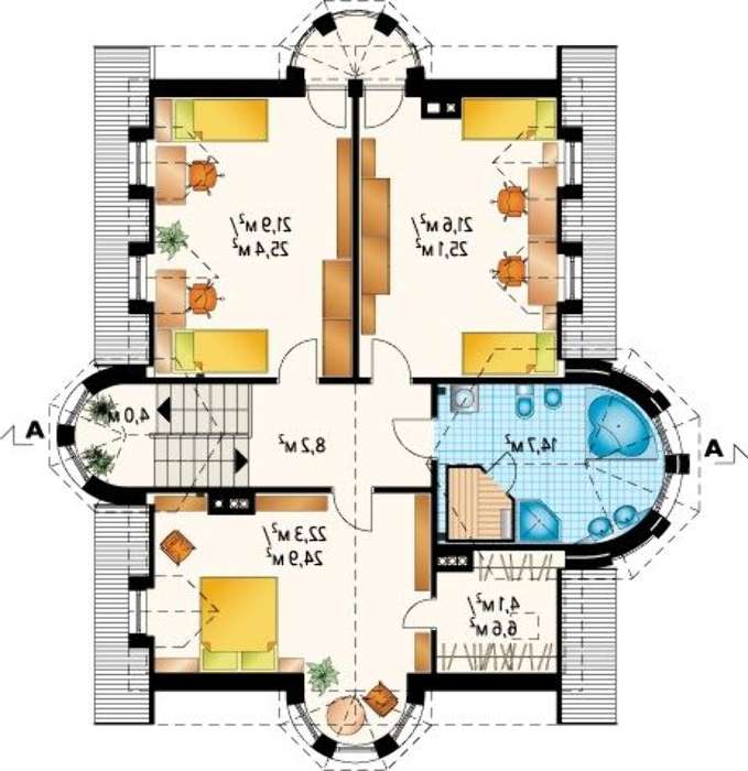 Проект усадьбы с эркерами и шестью спальнями 4M3049