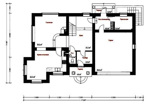 Проект содержит три раздела – АрхитектурныйКонструктивный и Инженерный: водоснабжение, отопление, вентиляция, канализация, электроснабжение (приобретается за дополнительную плату) + Пояснительная записка.
