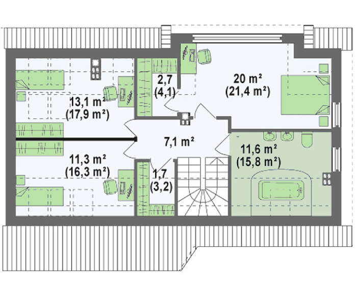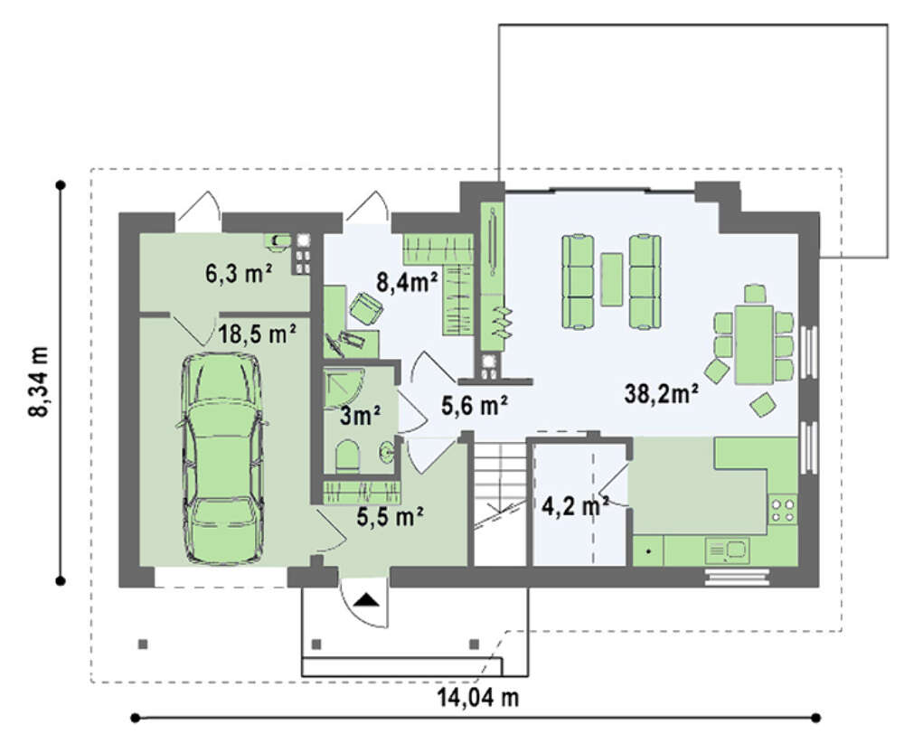 Проект содержит три раздела – Архитектурный, Конструктивный и Инженерный: водоснабжение, отопление, вентиляция, канализация, электроснабжение (приобретается за дополнительную плату) + Пояснительная записка.