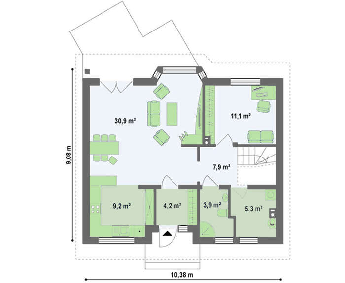 Проект уютного дачного дома с двухскатной кровлей 4M412a