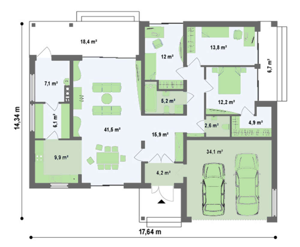 • 4M069 Проект уютного коттеджа с гаражом и крытой террасой