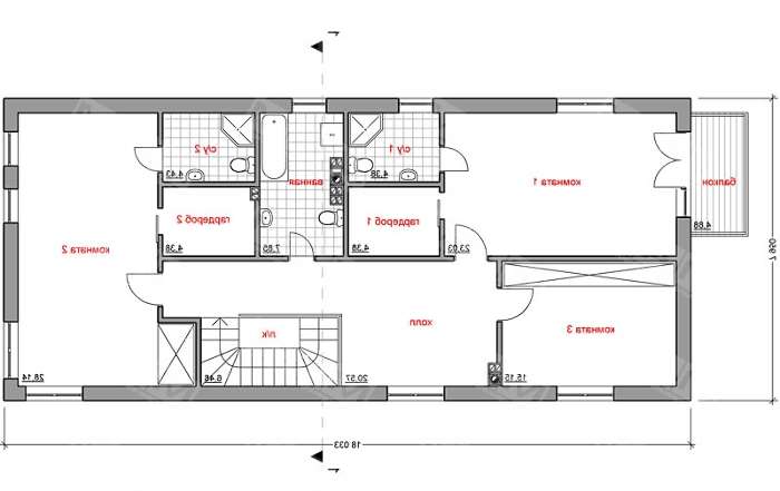 • 4M1864 Проект узкого двухэтажного коттеджа