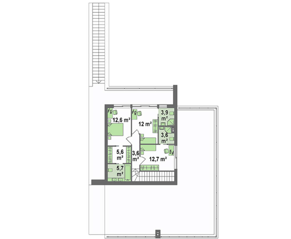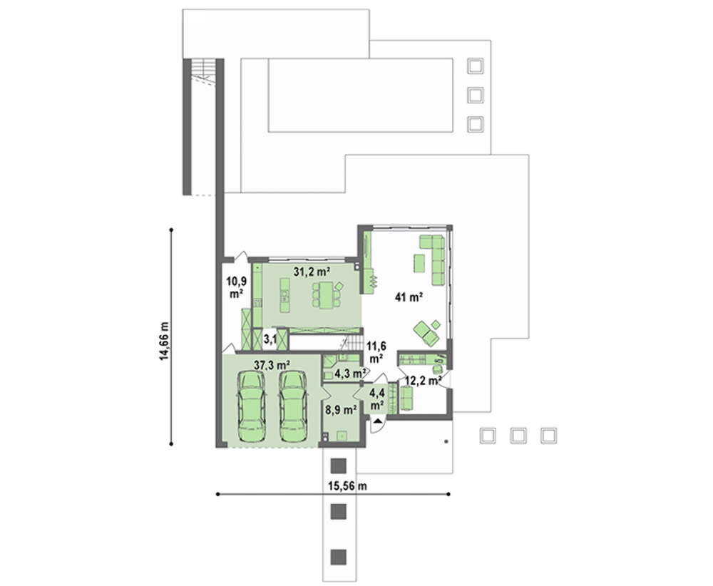 Проект содержит три раздела – Архитектурный, Конструктивный и Инженерный: водоснабжение, отопление, вентиляция, канализация, электроснабжение (приобретается за дополнительную плату) + Пояснительная записка.