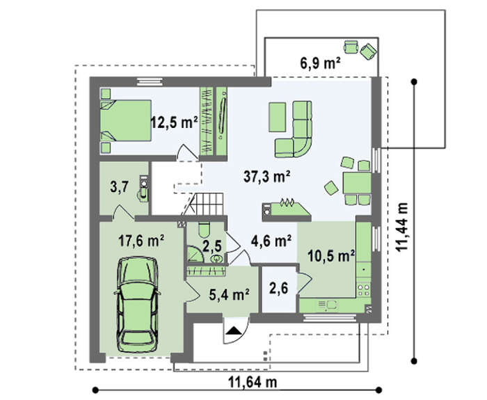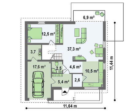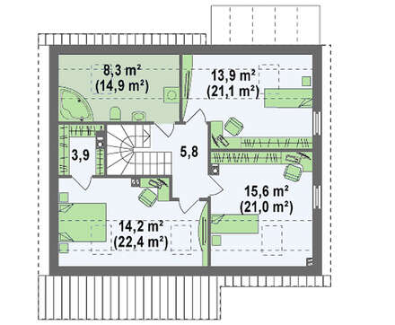 Проект загородного дома с мансардой, дополнительной спальней и застекленной террасой