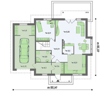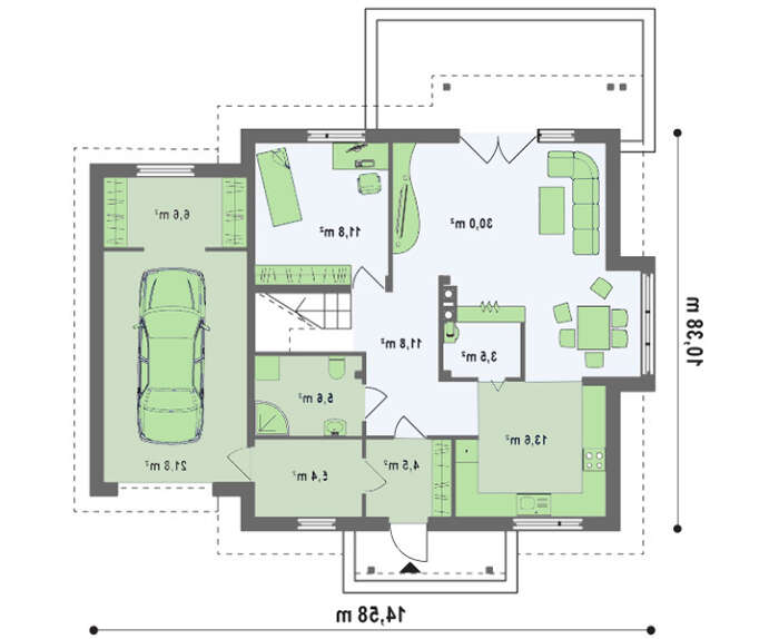 Дом с мансардой над гаражом понравится тем, кто ценит добротность и уют. Тщательно продуманная планировка внутреннего пространства позволяет комфортно разместиться большой дружной семье.