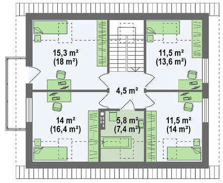 Проект загородного коттеджа с мансардой площадью 151 кв.м. 4M7145