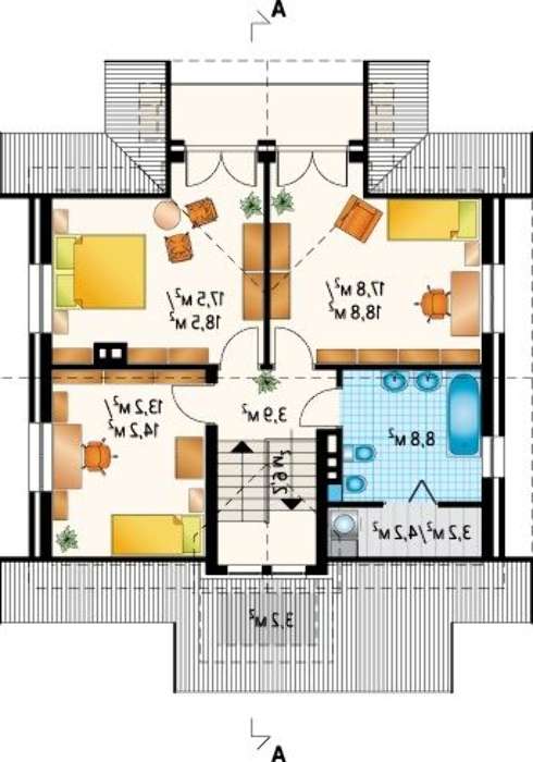 Для полноценного отдыха и расслабления имеются отделенные апартаменты. Уединенная горенка первого этажа может послужить спаленкою, серьезным кабинетом или безмятежным пространством для детской. Три спальни второго уровня расположения отличаются большими размерами. Любители романтики и склонные к мечтаниям будут рады немалому балкону, надежно укрытому кровлей от неприятностей природы.