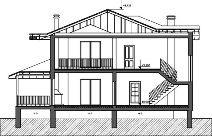 Проект содержит три раздела – АрхитектурныйКонструктивный и Инженерный: водоснабжение, отопление, вентиляция, канализация, электроснабжение (приобретается за дополнительную плату) + Пояснительная записка.