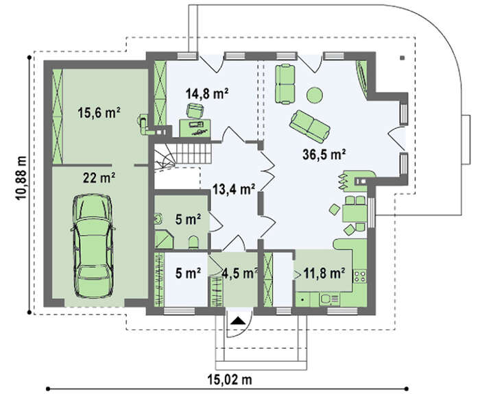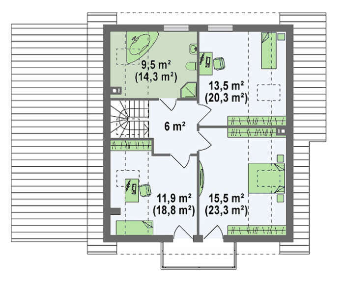Проект содержит три раздела – Архитектурный, Конструктивный и Инженерный: водоснабжение, отопление, вентиляция, канализация, электроснабжение (приобретается за дополнительную плату) + Пояснительная записка.