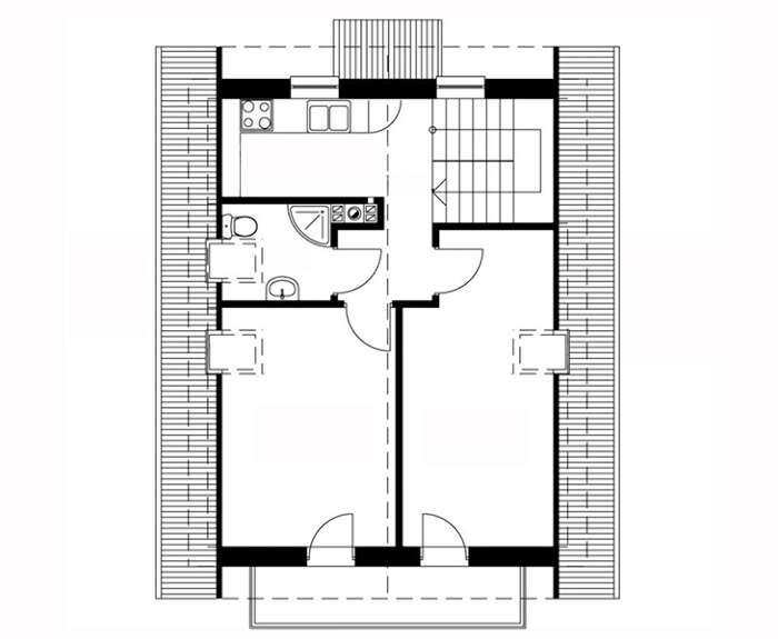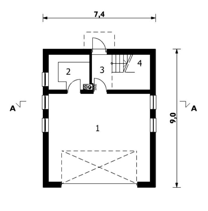 Проект содержит три раздела – Архитектурный, Конструктивный и Инженерный: водоснабжение, отопление, вентиляция, канализация, электроснабжение (приобретается за дополнительную плату) + Пояснительная записка.