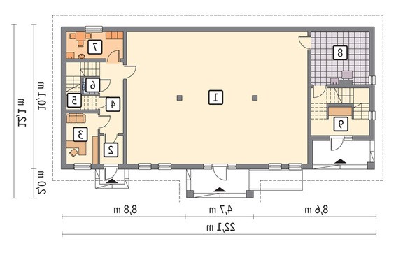 Проект содержит три раздела – Архитектурный, Конструктивный и Инженерный: водоснабжение, отопление, вентиляция, канализация, электроснабжение (приобретается за дополнительную плату) + Пояснительная записка.