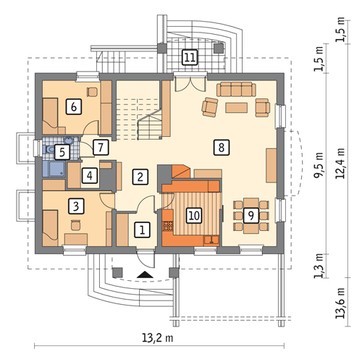 Проект содержит три раздела – Архитектурный, Конструктивный и Инженерный: водоснабжение, отопление, вентиляция, канализация, электроснабжение (приобретается за дополнительную плату) + Пояснительная записка.