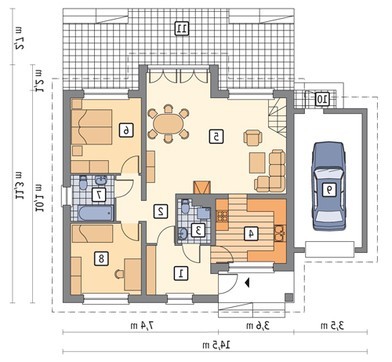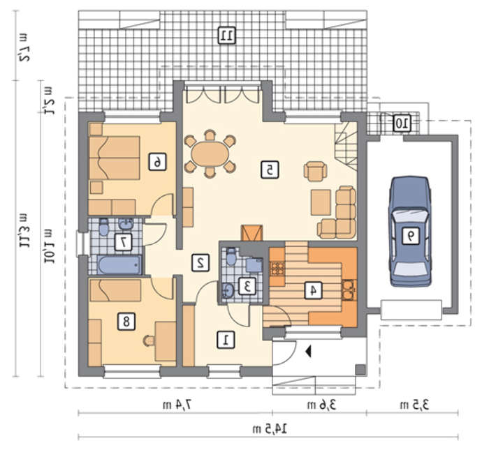 Проект содержит три раздела – Архитектурный, Конструктивный и Инженерный: водоснабжение, отопление, вентиляция, канализация, электроснабжение (приобретается за дополнительную плату) + Пояснительная записка.