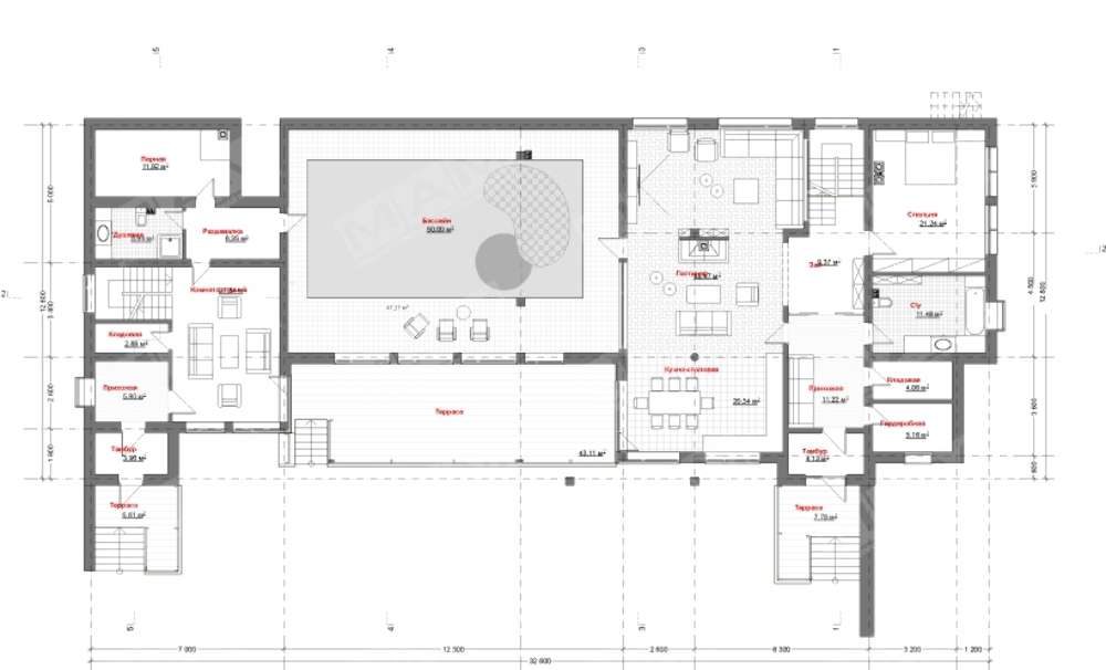 • 4M1884 Проект жилого коттеджа с удобной планировкой и бассейном внутри