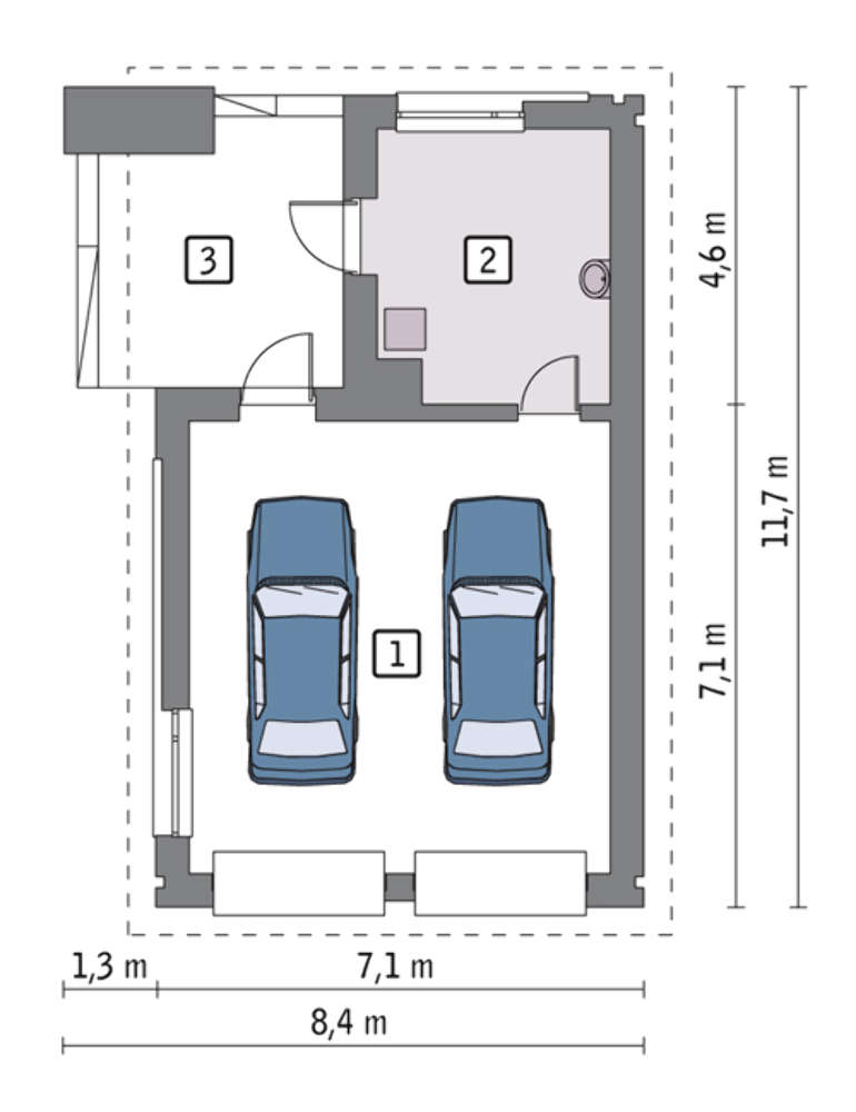Проект содержит три раздела – Архитектурный, Конструктивный и Инженерный: водоснабжение, отопление, вентиляция, канализация, электроснабжение (приобретается за дополнительную плату) + Пояснительная записка.