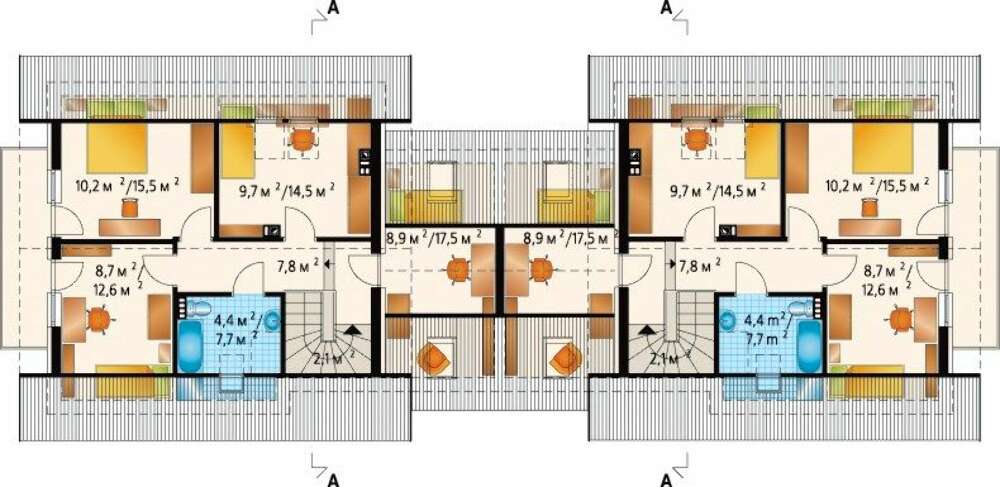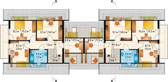 Один дом на двоих – слишком тесно, два дома для каждого – слишком много, а вот дом на две семьи – то, что надо! Две зеркальные половинки, как сами братья – да, такой дом прописан им судьбой. Братья решили срочно строить именно такой дом, а внутри каждый сделает ремонт так, как захочет.