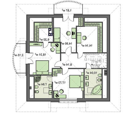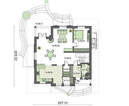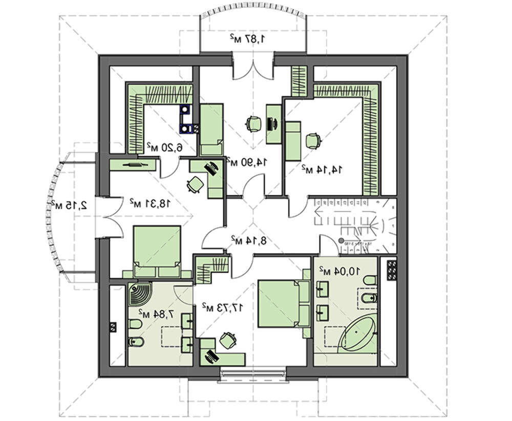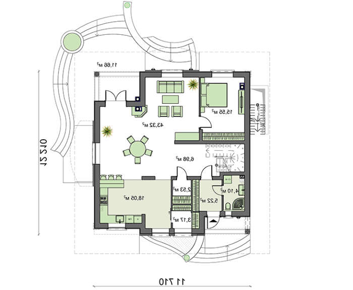 • 4M1472 Схема европейского особняка площадью 316 кв. м с террасой оригинальной формы