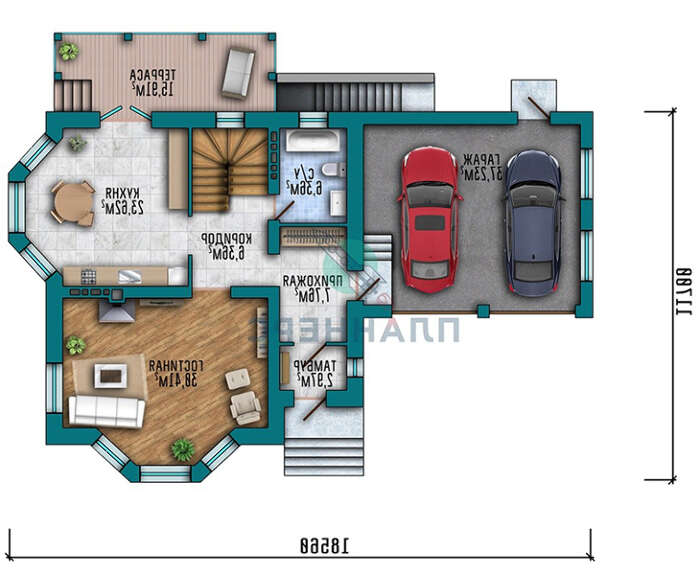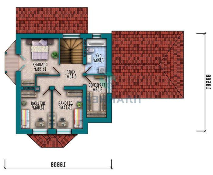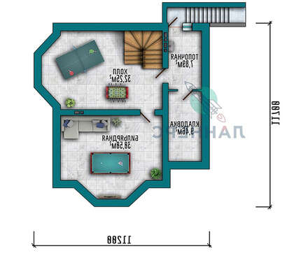 Схема великолепного двухэтажного особняка площадью 267 кв. м в чешском стиле с цокольным этажом 4M1423