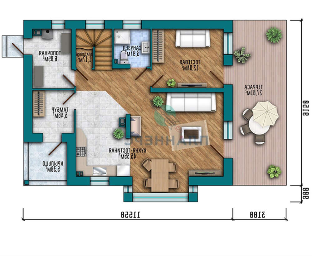 • 4M1421 Схема великолепного коттеджа площадью 164 кв. м в европейском стиле