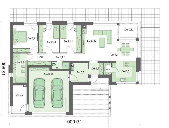 Проект содержит три раздела – АрхитектурныйКонструктивный и Инженерный: водоснабжение, отопление, вентиляция, канализация, электроснабжение (приобретается за дополнительную плату) + Пояснительная записка.