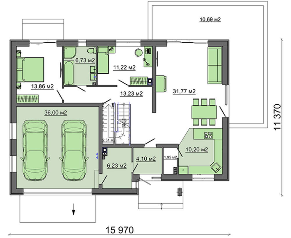 Проект содержит три раздела – АрхитектурныйКонструктивный и Инженерный: водоснабжение, отопление, вентиляция, канализация, электроснабжение (приобретается за дополнительную плату) + Пояснительная записка.