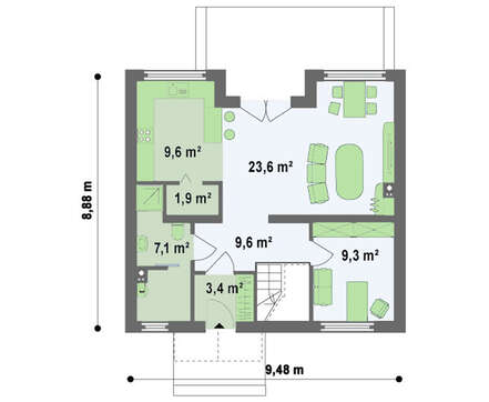 Проект содержит три раздела – Архитектурный, Конструктивный и Инженерный: водоснабжение, отопление, вентиляция, канализация, электроснабжение (приобретается за дополнительную плату) + Пояснительная записка.