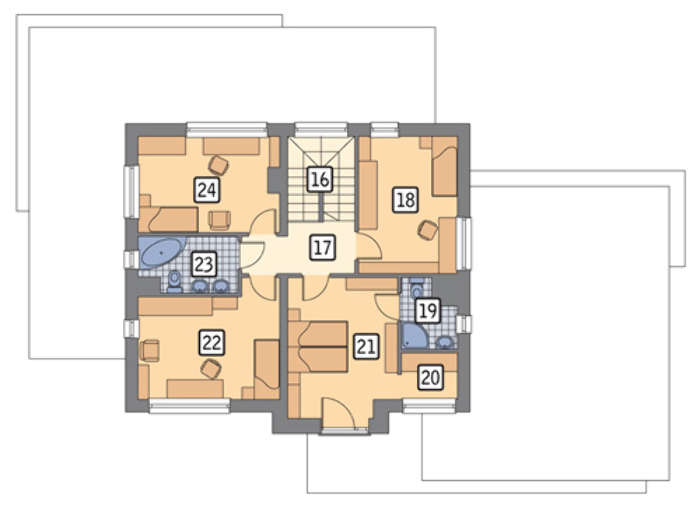 Проект содержит три раздела – Архитектурный, Конструктивный и Инженерный: водоснабжение, отопление, вентиляция, канализация, электроснабжение (приобретается за дополнительную плату) + Пояснительная записка.