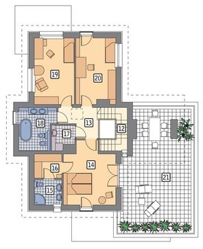 Проект содержит три раздела – Архитектурный, Конструктивный и Инженерный: водоснабжение, отопление, вентиляция, канализация, электроснабжение (приобретается за дополнительную плату) + Пояснительная записка.