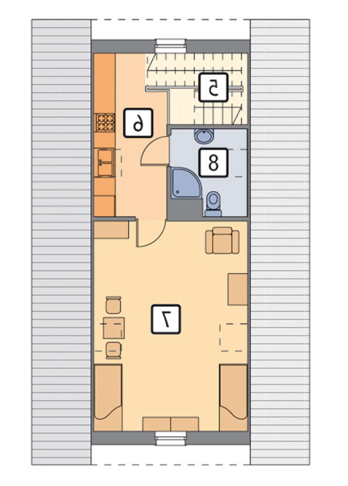 Проект содержит три раздела – Архитектурный, Конструктивный и Инженерный: водоснабжение, отопление, вентиляция, канализация, электроснабжение (приобретается за дополнительную плату) + Пояснительная записка.