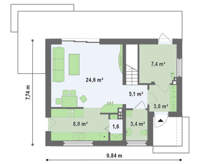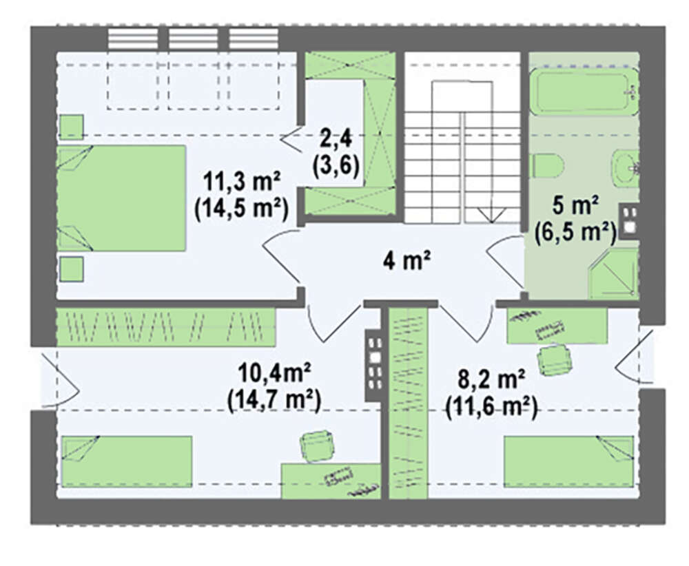 Проект содержит три раздела – Архитектурный, Конструктивный и Инженерный: водоснабжение, отопление, вентиляция, канализация, электроснабжение (приобретается за дополнительную плату) + Пояснительная записка.
