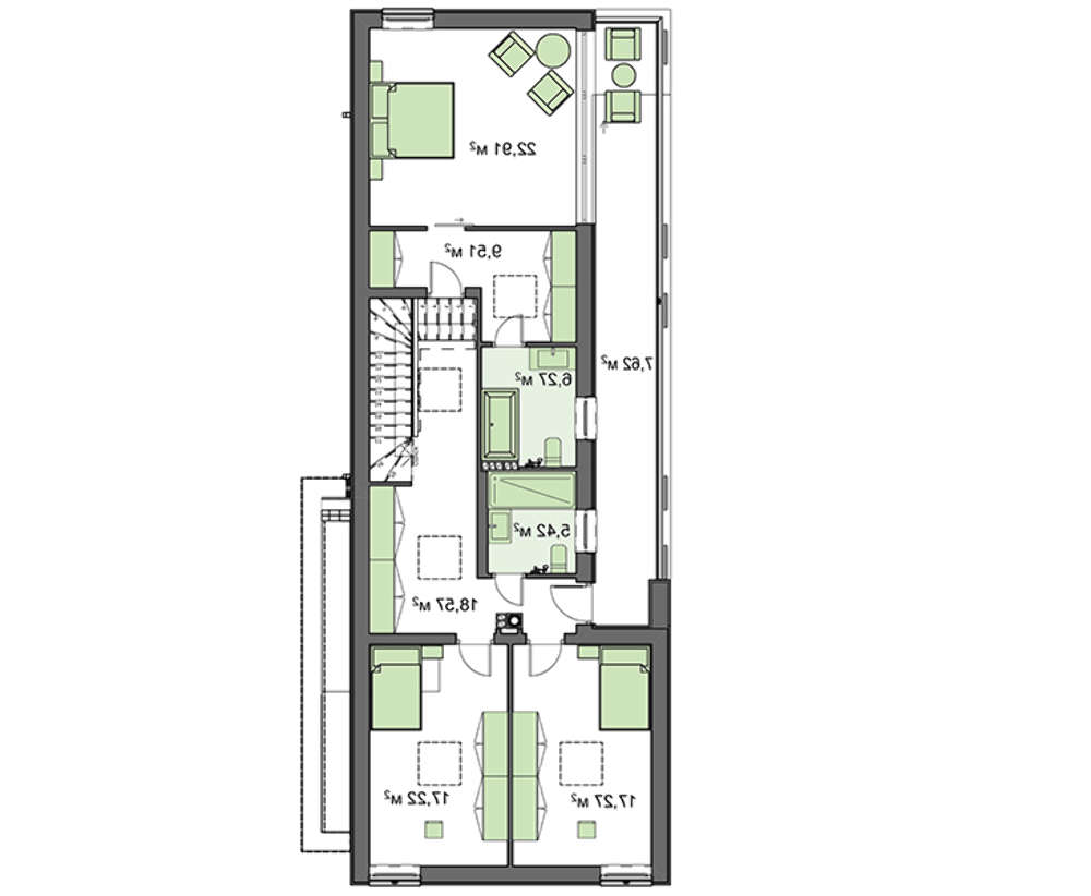 Проект содержит три раздела – Архитектурный, Конструктивный и Инженерный: водоснабжение, отопление, вентиляция, канализация, электроснабжение (приобретается за дополнительную плату) + Пояснительная записка.