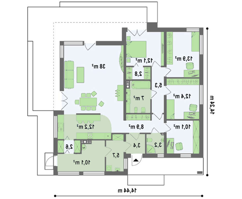 • 4M592G Современный одноэтажный проект дома с плоской кровлей