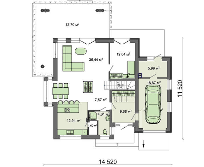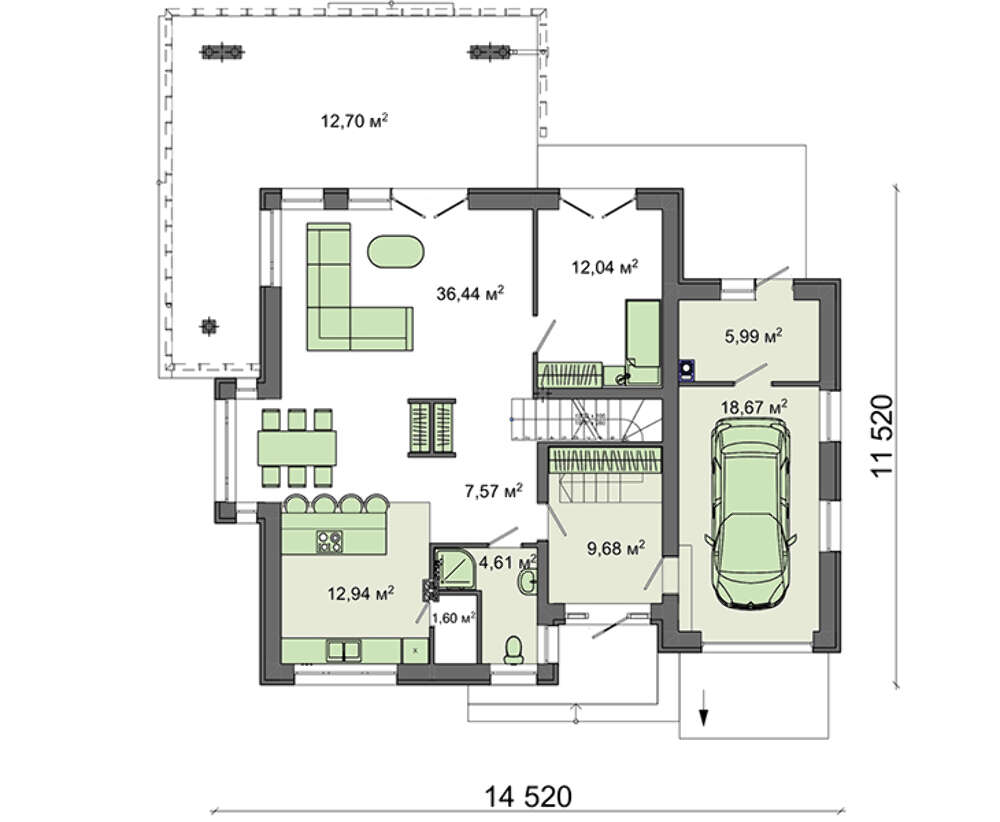 Проект содержит три раздела – АрхитектурныйКонструктивный и Инженерный: водоснабжение, отопление, вентиляция, канализация, электроснабжение (приобретается за дополнительную плату) + Пояснительная записка.
