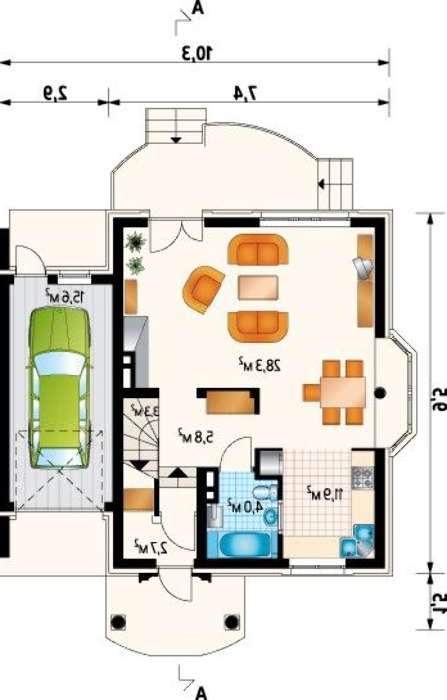 • 4M3705 Современный таунхаус с полукруглой террасой и крыльцом с колоннами