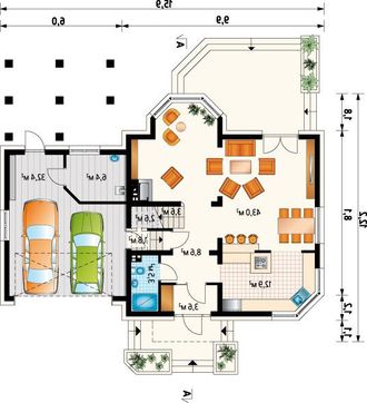 • 4M3246 Современный загородный дом с большой террасой и гаражом на два автомобиля