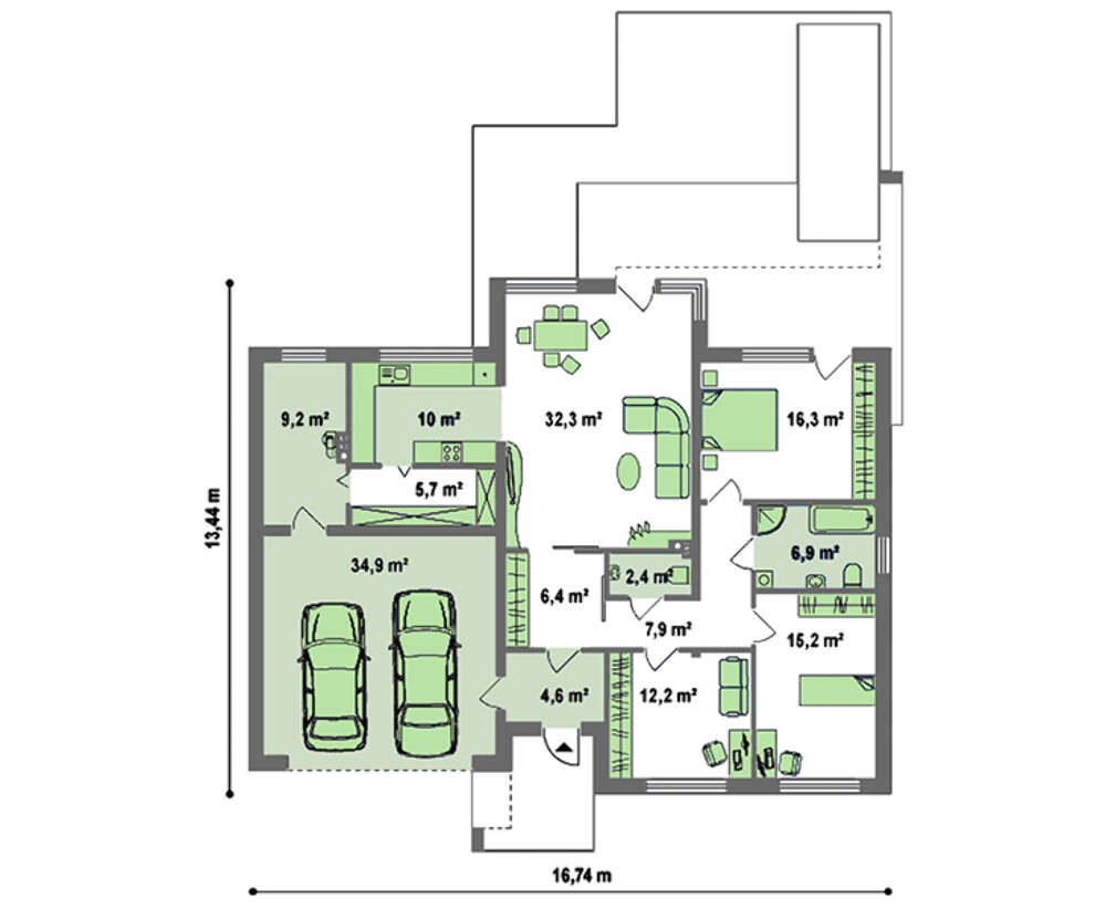 Проект содержит три раздела – Архитектурный, Конструктивный и Инженерный: водоснабжение, отопление, вентиляция, канализация, электроснабжение (приобретается за дополнительную плату) + Пояснительная записка.