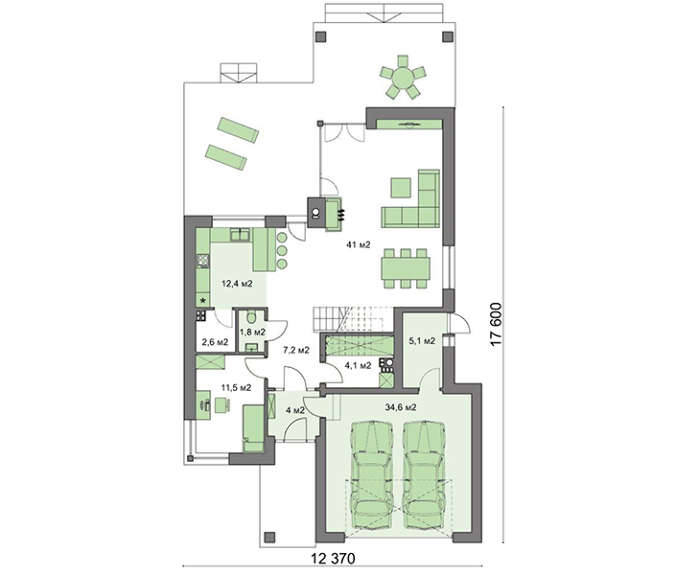 Проект содержит три раздела – Архитектурный, Конструктивный и Инженерный: водоснабжение, отопление, вентиляция, канализация, электроснабжение (приобретается за дополнительную плату) + Пояснительная записка.