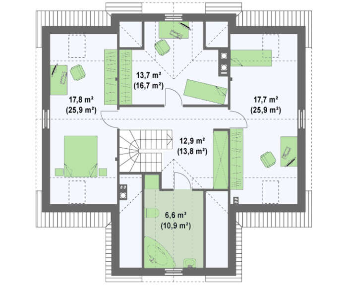 Проект содержит три раздела – Архитектурный, Конструктивный и Инженерный: водоснабжение, отопление, вентиляция, канализация, электроснабжение (приобретается за дополнительную плату) + Пояснительная записка.