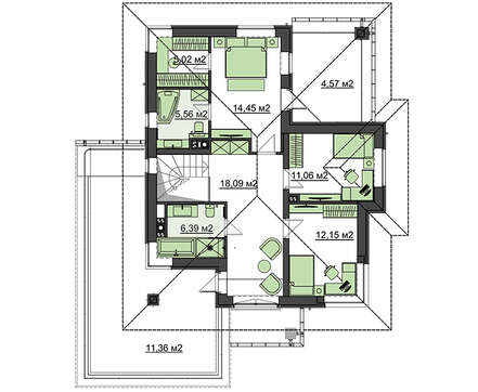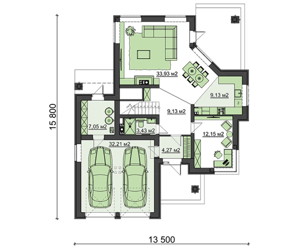 Проект содержит три раздела – Архитектурный, Конструктивный и Инженерный: водоснабжение, отопление, вентиляция, канализация, электроснабжение (приобретается за дополнительную плату) + Пояснительная записка.