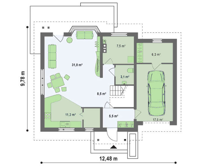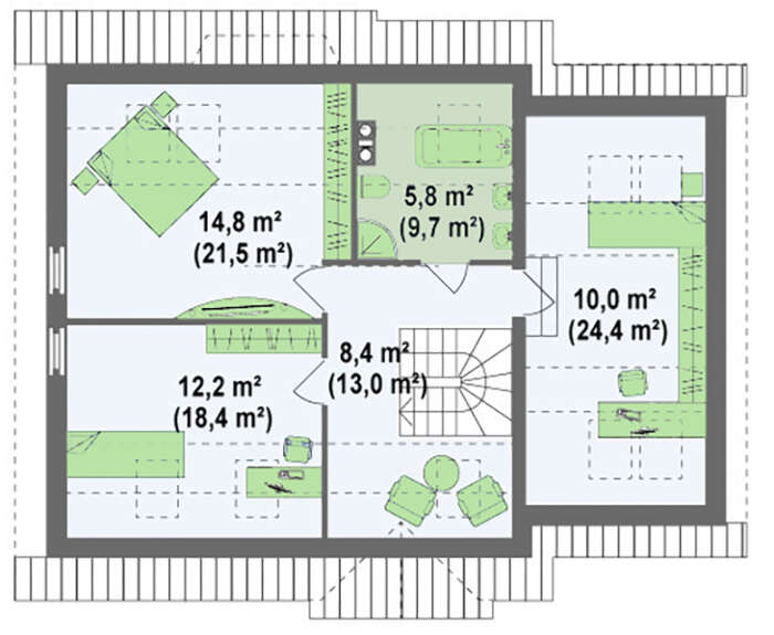 • 4M018 Стильный проект дома с мансардным этажом и гаражом