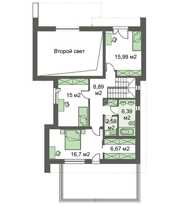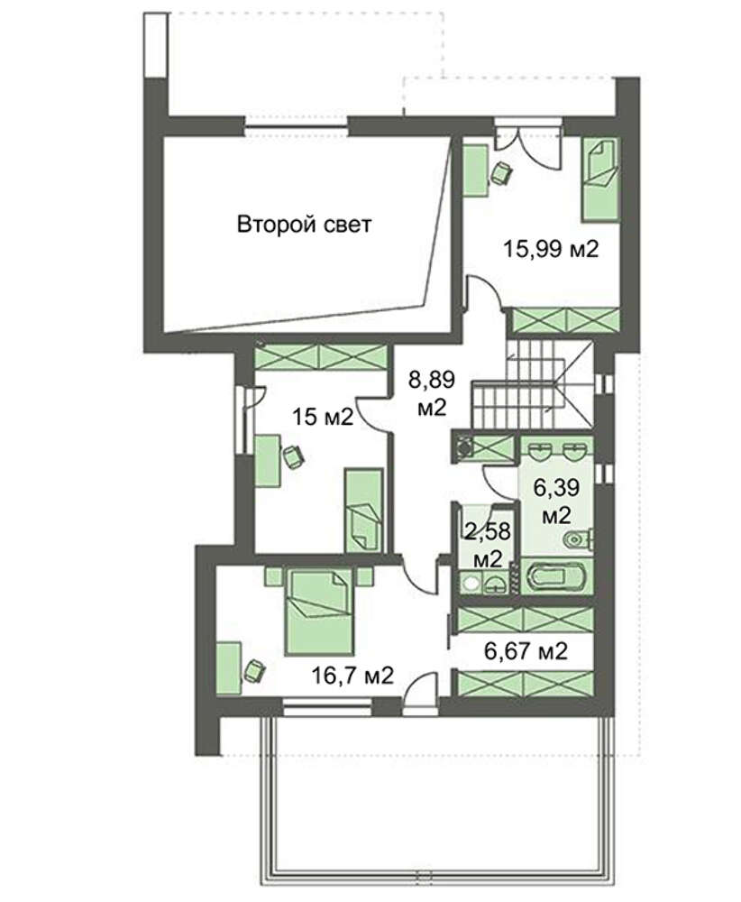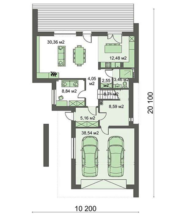 Проект содержит три раздела – Архитектурный, Конструктивный и Инженерный: водоснабжение, отопление, вентиляция, канализация, электроснабжение (приобретается за дополнительную плату) + Пояснительная записка.