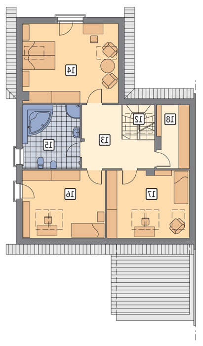 Проект содержит три раздела – Архитектурный, Конструктивный и Инженерный: водоснабжение, отопление, вентиляция, канализация, электроснабжение (приобретается за дополнительную плату) + Пояснительная записка.